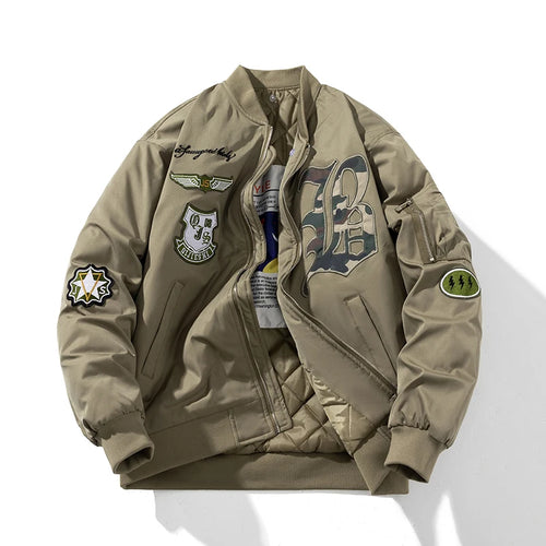 Autumn Winter Pilot Jacket Men Women Badge Star Vintage Bomber Jacket Embroidery Men Fashion Hip Hop Windbreaker Coat Streetwear