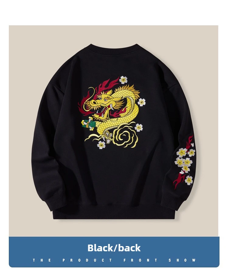 Autumn Embroidery Hoodies Men Women Chinese Carp Casual Crewneck Sweatshirt Cotton Fashion Hooded Hoodies Harajuku Unisex Male