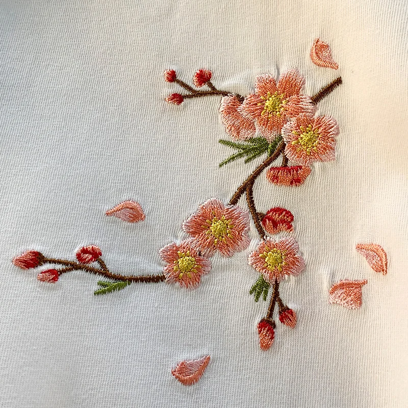 Embroidery T Shirt Man Flower Fashion Harajuku T Shirt Women Cotton Japanese Hip Hop Tees Short Sleeve Streetwear High Quality