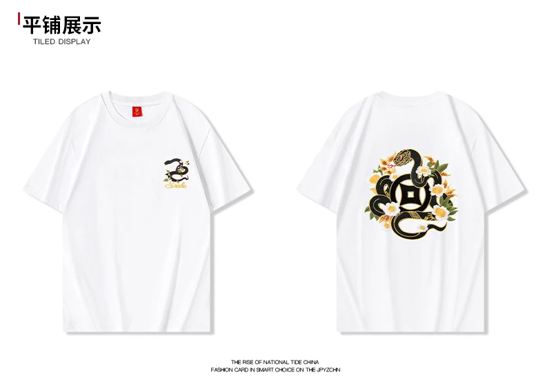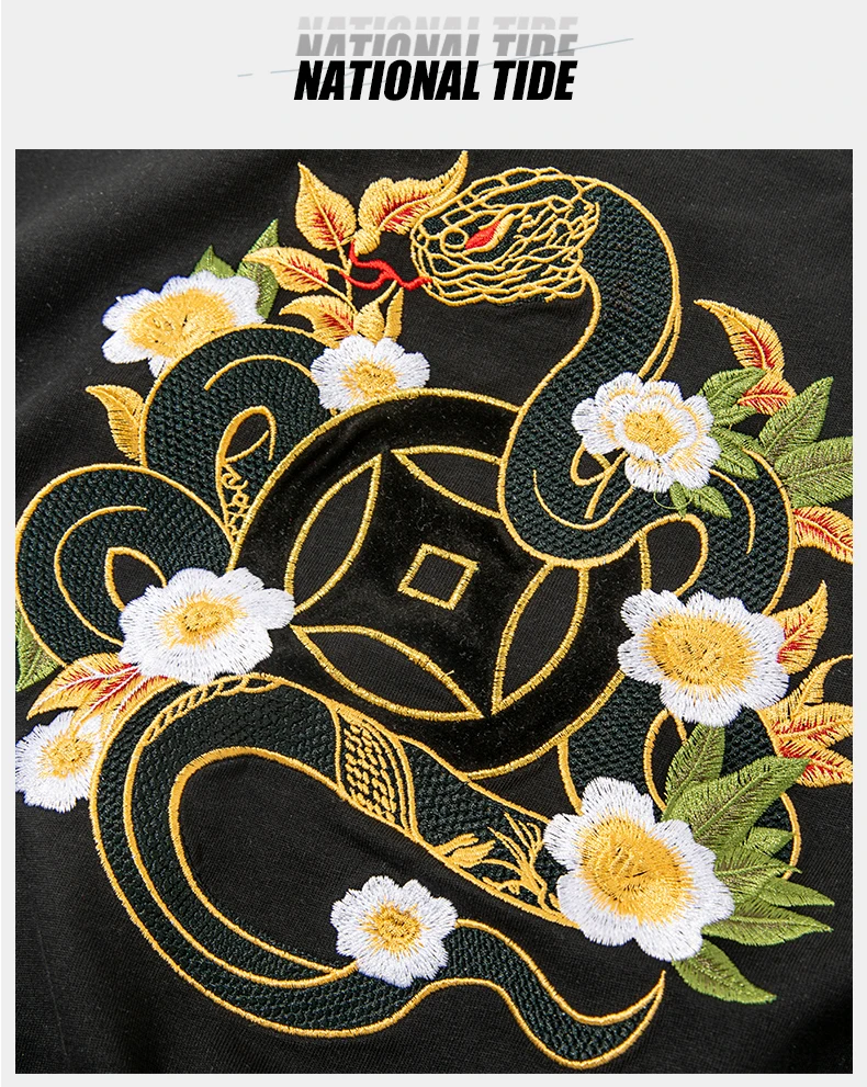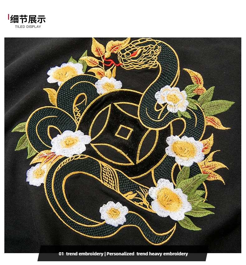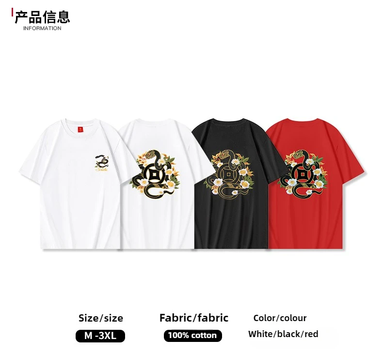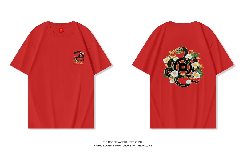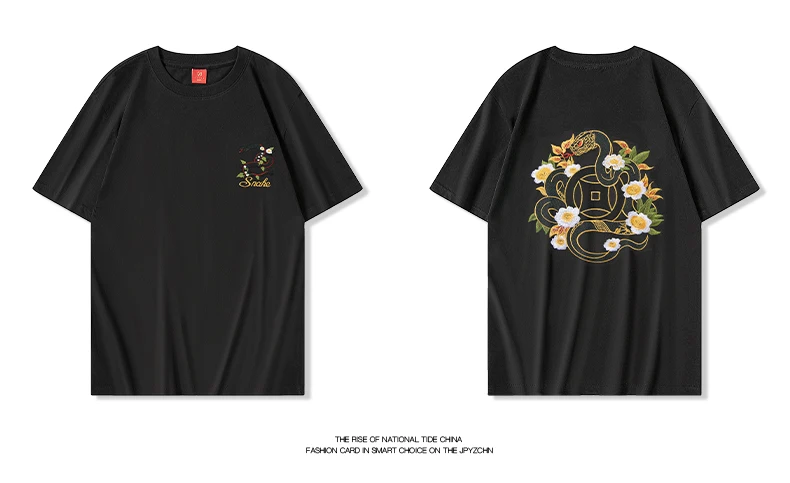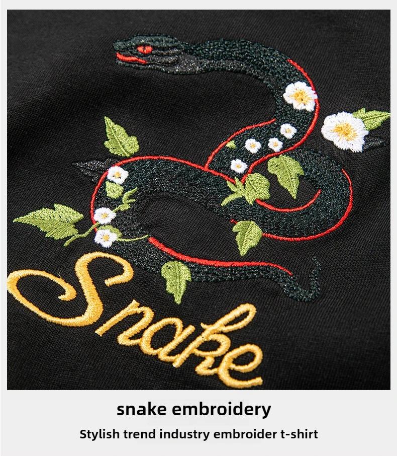 Summer Vintage T Shirt Men Harajuku Embroidery T Shirt Snake Flower Hip Hop Graphic Tees Designer Fashion Streetwear Unisex Red